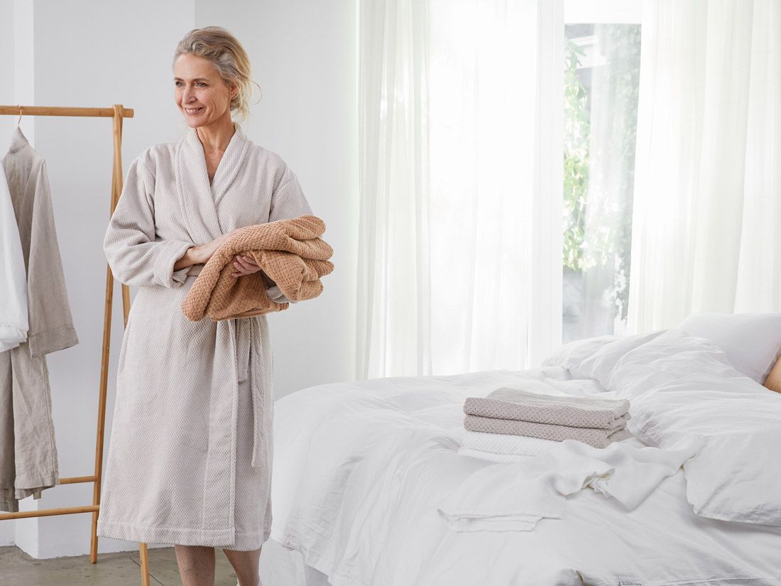 Yumekos badeværelsestekstiler er fremstillet af 100 % økologisk bomuld, som aldrig har været i kontakt med pesticider eller andre skadelige kemikalier og derfor er ren, sikker og skånsom mod huden. Den lever op til de strenge krav i Global Organic Textile Standard (GOTS). Du kan dermed være sikker på, at dine badeværelsestekstiler er 100 % økologiske, lige fra bomuldsfrø og tråde til det enkelte håndklæde. Det er bedre for dig og bedre for miljøet.